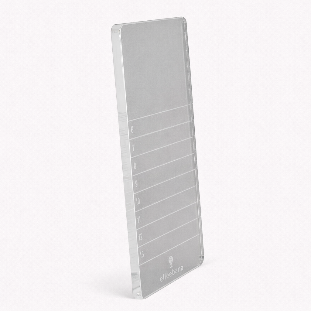 Es una bandeja de cristal sólida diseñada como lienzo profesional para organizar extensiones de pestañas durante el proceso de aplicación.